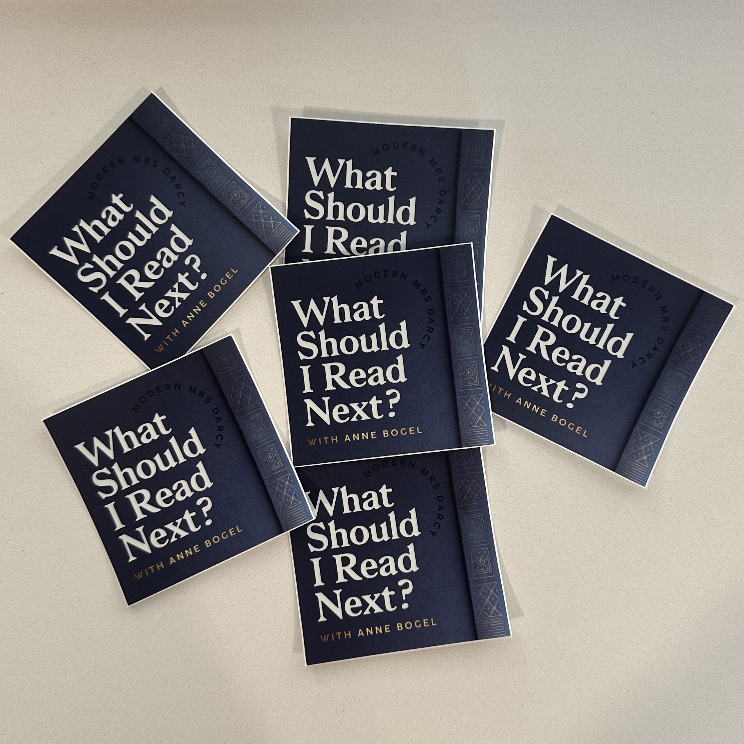 This is a 3″ x 3″ square sticker with the What Should I Read Next podcast cover art.
